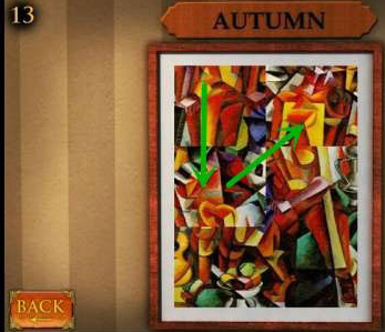 这一关我们来到了一间放满了画作的工作室,看起来像是画作鉴定室,桌子上还亮着台灯,看来这里的工作人员没走多久,但是画作却散落了一地,是有什么急事所以不小心弄到了地上吗?还是让我们专心于解谜,赶快进入下一关吧,否则等会被人发现我们闯入了这里,被人当成小偷就跳进黄河也洗不清了。