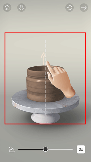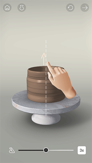 2、给陶器塑形,在界面上下左右滑动控制形状,上下滑动可以调整瓶子的高度,而左右滑动可以控制瓶子的宽度