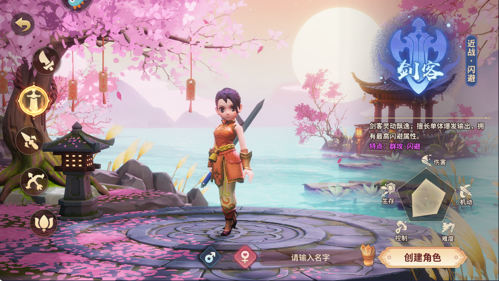 剑客职业与刀客不同,更偏向机动性和控制连招,技能招式上灵动飘逸,在打出控制后能够迅速进行爆发性伤害;不过职业身板较脆,不能正面承受大量伤害,更适合喜欢抓时机,打爆发连招的侠士。