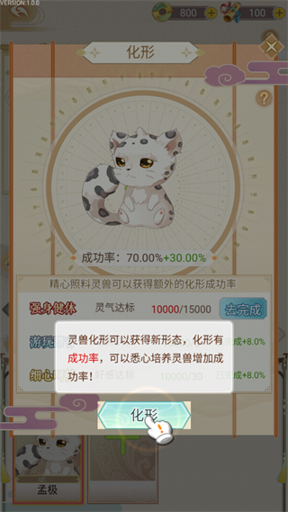 3、到了一定阶级,点击“化形”灵兽就可以化形了
