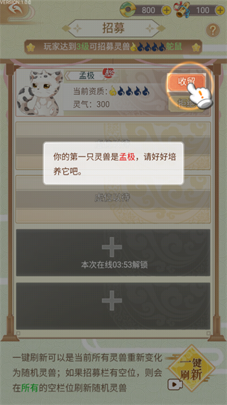 1、点击“招募”,开始招募自己的第一只灵兽吧