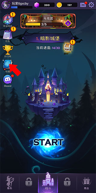 1、下载并打开游戏,通过基础的教程关卡之后来到首页,点击左侧的收藏按钮