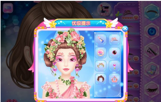 6、当你化妆品种类齐全,依然得不到优的时候,可以使用提示,直接查看优级的化妆品搭配,然后选择使用推荐的化妆品,即可轻松获得优级。