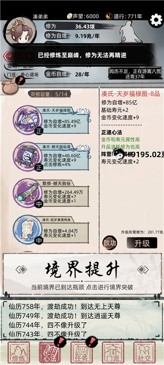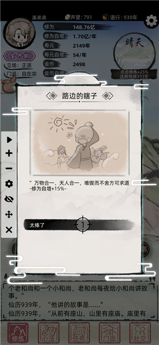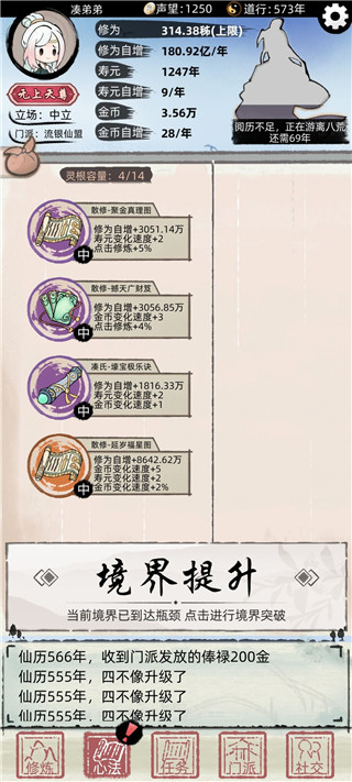 4、游戏不再让玩家自己进行修炼而是能够跟随门派的师傅进行修仙难度会更加的低。