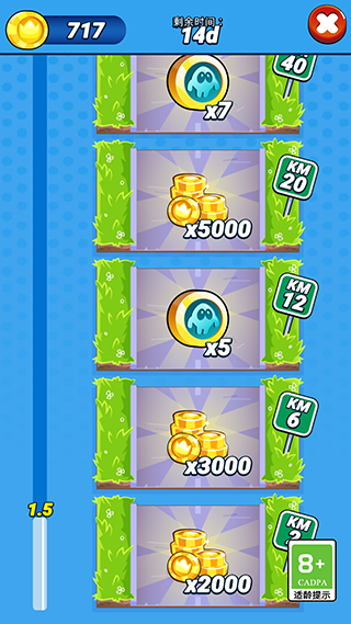 1、玩家控制可爱角色的进程。游戏类似于跑酷;