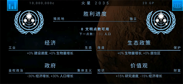 游戏的核心是改造星球,从调整温度、湿度到建设殖民地,每一步都需要精心规划。你可以选择真实行星或虚拟世界进行殖民,甚至还能创造独特的生态系统和生物。虽然一开始觉得生态派系没什么用,但后期确实能加快绿化进程。