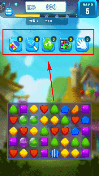 ⑤魔法手套:使用后强制交换任意两个糖果的位置(只剩一个水果完成目标时不可使用)