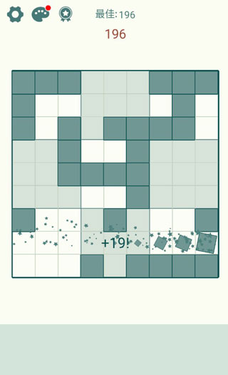 5、每次填满一个九宫格方块或者填满棋盘的任意一横排或一竖排都可以进行一次消除