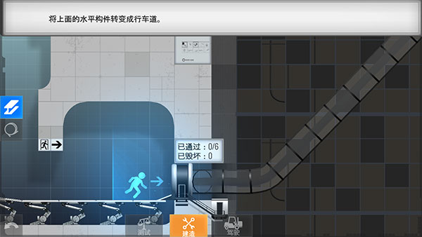 量子隧道。这一关增加了传送门,解锁了新的建筑材料--钢索,在岩浆上方铺设上一层桥面,进行硬化,然后在楼板的建筑点上,用钢索连接桥面的连接点,即可通关。