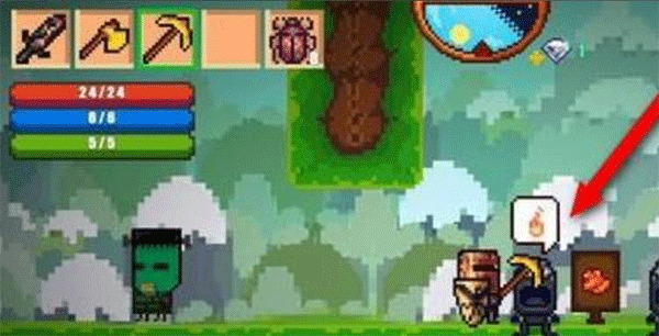 2、将5个水晶放到熔炉中去,就会自动消耗一个火虫,然后熔炉自动煅烧。
