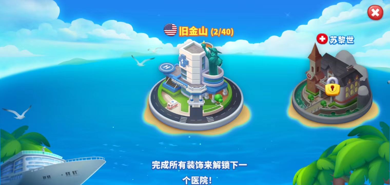 8、当我们完成医院所有的装饰时,就可以解锁下一个医院哦。