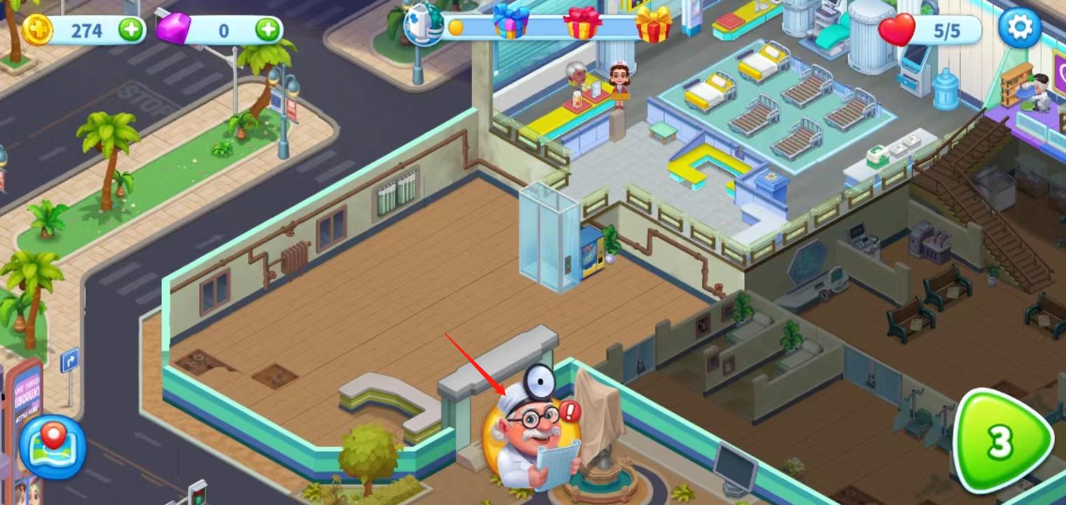 6、另外,回到主页面,点击医生可以对医院进行装修;