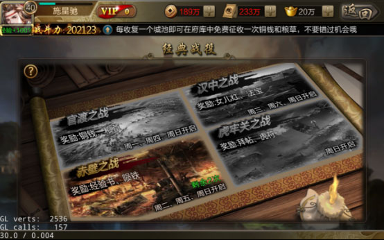 经典战役在每周一、周四、周日时开启官渡之战,成功挑战关卡后将获得大量铜钱与粮草奖励,机会不容错过。