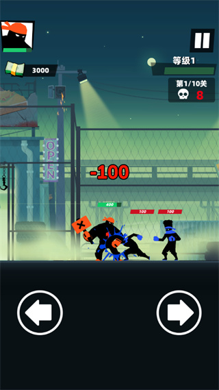 2、拥有非常独特的游戏玩法,玩家需要用自己的智慧,打败更多的敌人,打败最终的boss。嘻哈格斗王是一款非常经典的火柴人风格格斗闯关类游戏,多人物选择闯关式玩法,为你带来炫酷的技能和操作,玩起来十分热血刺激!游戏不仅创新融合了Roguelike玩法元素,拥有着各种随机出现的BUFF及事件、数十种特色人物、还有独特的美式街区背景设定,可带给大家与众不同的火柴人游戏体验。游戏的玩法很简单,其实大家伙儿应该多多少少都接触过的。它采用的是竖屏模式,然后双手操作,左右手分别控制人物左右方向,角色会自动攻击以及闪避,玩起来还是蛮简单的。不过呢胜在该游戏的关卡比较多,并且每个关卡所带给我们的感受也是不一样的,所以还是值得大家期待的哦。另外就是在闯关的途中我们的角色会升级,升级系统会赠送三个技能让我们挑选,从而让我们变得更加强大起来。不过我们什么身份,挑选这玩意从来不在我们的考虑范围之内,我们要做的就是“我全都要”,因此呢这里给大家带来的就是嘻哈格斗王免广告破解版,该版本去除了广告内容,可免广告获得诸多奖励,感兴趣玩家用户快来下载体验吧!