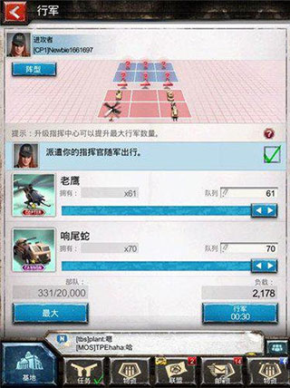 那么要如何占领设施呢?很简单,玩家只需点击“采集”即可进入行军界面,接下来只要布置自己的部队即可。需要注意的是,同时派遣的部队越多,那么可以采集的资源(即实际负载)也就越多,所以在新手保护期(默认为24小时)的话,建议可以派遣最大部队进行资源占领。