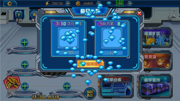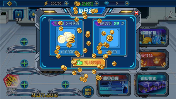 最让我惊喜的是破解版,下载之后不用看广告就能直接领取金币、钻石和体力,真的很方便。游戏里有很多机甲可以解锁,还有各种零件可以用来升级合成更强的机甲,战斗场面也很热血刺激。