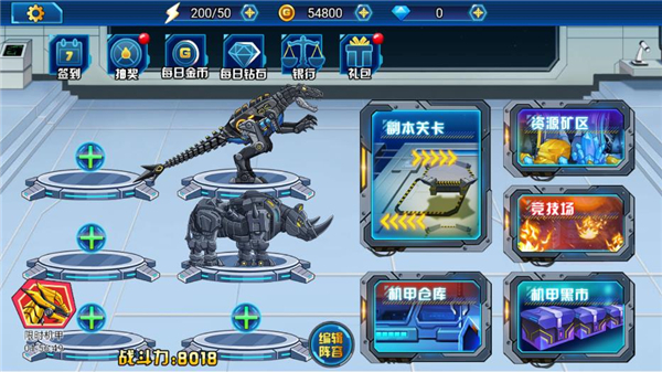 龙兽总动员游戏是一款非常出色的科幻机甲风格的休闲手游,该作凭借着炫酷的技能招式、趣味的竞技闯关玩法、图案风格清新唯美、霸气威武的机甲设定以及丰富的机甲等诸多优势,吸引了很多玩家的到来。游戏背景设定在遥远的未来,人们在这里研究各类机甲,身为玩家的我们任务就是不断培养恐龙机甲、获取恐龙机甲,然后组合成强悍的阵容在各个关卡中进行战斗即可,游戏玩法有些许类似于:“龙兽争霸、机甲斗兽场”等机甲游戏。为了让玩法不那么单一,龙兽总动员游戏为玩家们提供了多种不同的关卡,例如:副本关卡、资源矿区、机甲仓库、竞技场、机甲黑市等玩法系统,不同的玩法系统所对应的玩法是不同的,每一个关卡都考研各位指挥官的策略能力,选出最强机甲,发挥出你的最强实力吧!为了可以让广大玩家更方便的体验到游戏的乐趣,小编为大家带来的是龙兽总动员破解版,该版本已由网络大神成功修改破解,玩家进入游戏后无需观看广告即可领取海量金币、钻石以及体力等奖励,小编亲测有效,心动的朋友们快快前来下载体验一番吧。