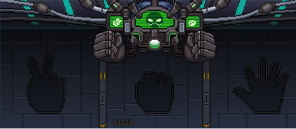 该房间的BOSS“人如房名”是个猜拳机器人。TA会和玩家玩剪刀石头布的游戏,输了的话会突然下砸偷袭你哦~不知道攻击连接BOSS电线会不会有伤害值呢。