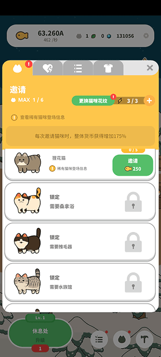 3、圈养的猫咪越来越多,后面可以解锁的新猫咪就更多,所以赶紧玩起来吧!