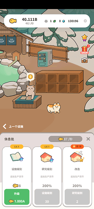 2、然后我们就可以升级我们的猫舍,还能构建新设备。