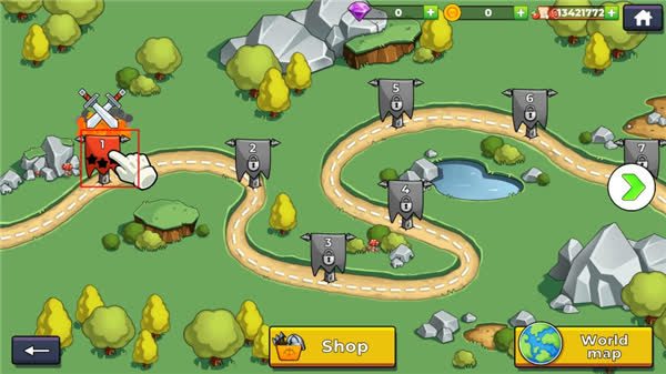5、玩过愤怒小鸟的一看就懂了,滑动屏幕控制弓箭发射方向即可消灭敌人(猪猪)。