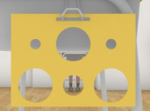 查看电视柜旁边的椅子脚上的圆圈并记录,用于3界面的第二排第一个柜子,打开柜子获得削笔刀