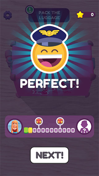 2、第一关将行李拖动到行李箱中即可,完成关卡后点击next可进入下一关