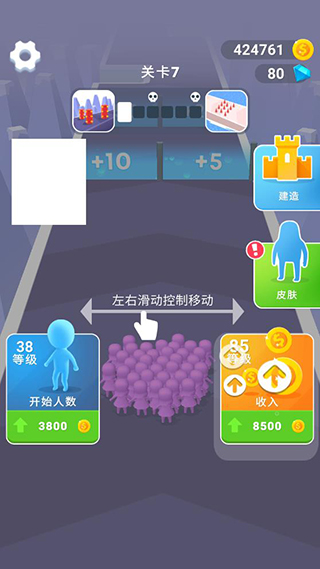 1、玩家控制主角躲避障碍物。2、玩家通过积累战士的数量获得胜利。