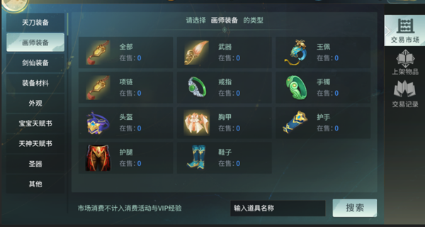 交易道具类型全面,各职业的装备、套装打造材料、其他材料等均可进行上架交易;游戏道具出售期为24小时,24小时后无人购买则会自动通过邮件返还,交易完成会收取一定的手续费;
