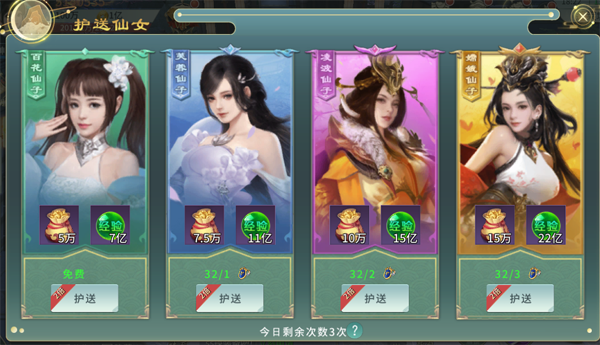 护送仙女刷经验,既能解放我们的双手,又能修真升级两不误,这个功能简直就是为我们量身定做。而且护送仙女时再使用双倍经验的加成,那么会发出怎样的化学反应呢?想必我们都很清楚,火箭升级就是如此容易!