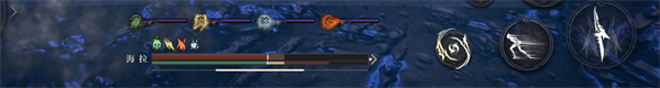 3、奥义槽:黄条,技能描述中的灵子,第五关会解锁显示,积攒满后可释放奥义技能,也就是常说的大招。大招按钮只有当积攒满的时候才会显示出来。