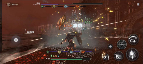 2、破招:怪物的攻击方式分为两种,带蓝光标记的为可破招攻击,蓝光闪烁期间使用破招技能可以打断怪物的攻击;带红光标记的则为不可破招攻击。
