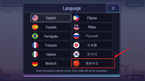 1、从当快下载加查俱乐部可爱屋至手机,打开游戏首页,找到右下角“language”