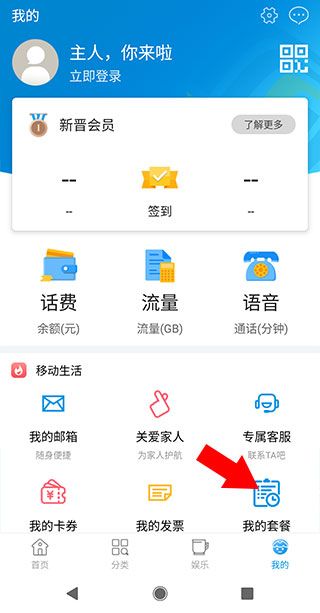 5、如果想要查看套餐信息,点击下方的我的套餐选项即可