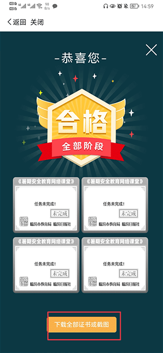 2、活动有四个阶段任务,需要将四个阶段的任务全部完成,任务完成后点击下方的下载证书