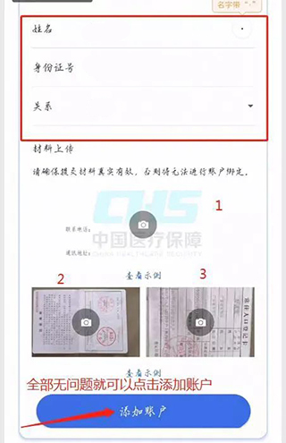 10、确认被绑定人员的身份信息和承诺书、户口本照片是否有误,无问题的话即可点击最下方“添加账户”;