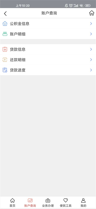 2、接着进入到“账户查询”界面,在该界面点击想要查询的内容即可获得查询的结果了。