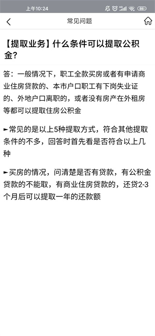 5、除此之外,在主界面点击进入“常见问题”,就能看见贷款,缴存,提取三项业务。