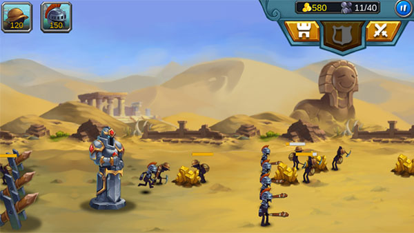 游戏的操作相对简单,进入后先生产矿兵获取金币,然后根据敌方部署情况选择性生产战斗单位,摧毁敌方石像即可获胜。此外,通过关卡还能获得技能点,优先升级王冠可以加快资源获取速度。作为火柴人系列的忠实粉丝,我觉得这款游戏很好地延续了前作的经典玩法,同时在策略性和可玩性上又有不少提升。如果你喜欢塔防或策略战争类游戏,这款《火柴人战争2奥德赛》绝对值得一试!