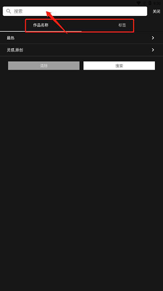 2、在搜索框中输入作品名称,或者选择标签搜索,然后点击搜索;