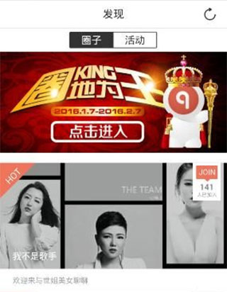 在发现界面,你可以查看热门的圈子和活动可以参与的呦~