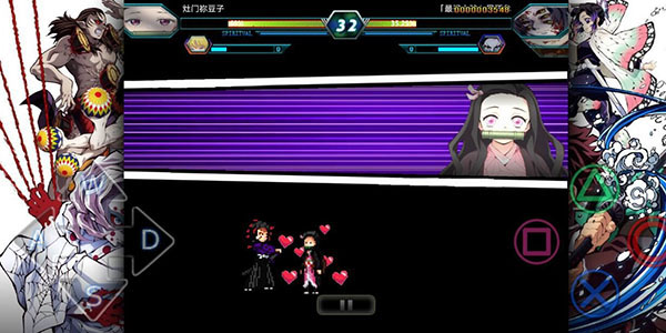 在对战模式中,玩家可以从灶门炭治郎、灶门祢豆子,以及其他在动画本篇登场的角色中,任意选择2名角色组合以2vs2的形式,进行线下以及线上最多2人的对战!以简单的操作带来爽快的战斗,立志成为最强的猎鬼人吧!