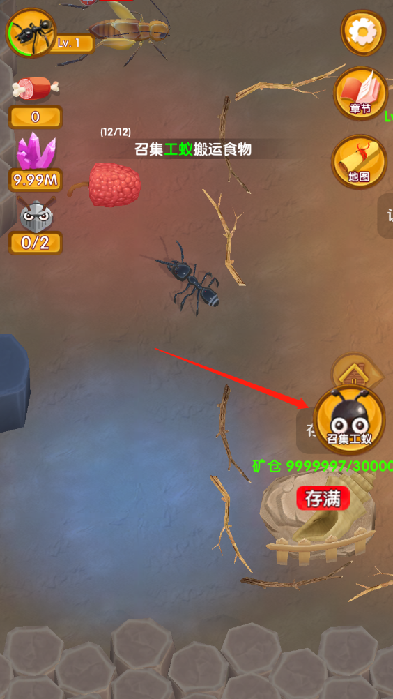 2、接下来我们需要去采集食物,然后召集工蚁一起搬运;