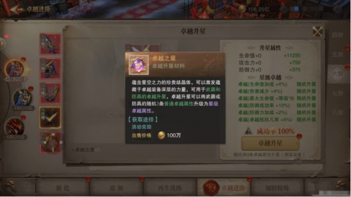 首饰的升星效果为随机将4条普通卓越属性升级为星级卓越属性,成功率同样为100%。
