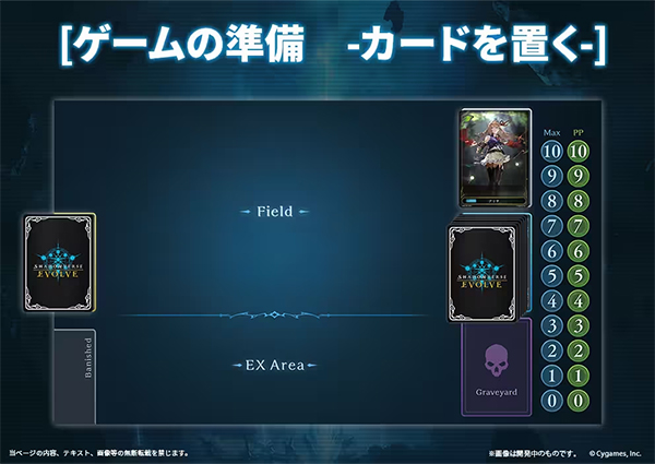 主战者卡牌放置到主战者区,主卡组与进化卡组分别盖放到到卡组区与进化卡组区。