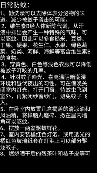 2、点击日常防蚊,这里有一些平时防蚊子的秘法绝招,大家可以参考