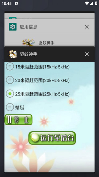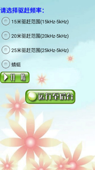 3、点击开始驱蚊吧,这才是要紧的功能,可以设置范围,另外附带驱赶蜻蜓的频率