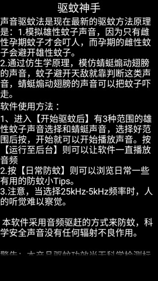 1、从本站下载软件后打开,驱蚊神手app界面非常简洁实在没有广告,就两三个功能按钮