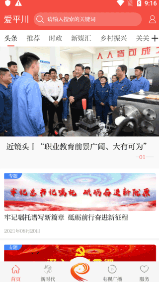 1、搜索新闻,用户可以搜索关键词来查看新闻,能很快就搜索到更多的新闻发生。2、电视频道,还有专门的平川电视频道,用户可以直接在里面通过电视来了解新闻。