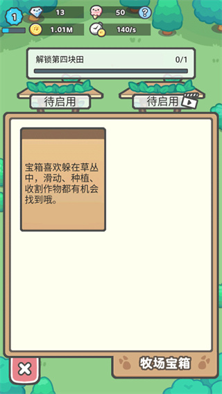 5、在游戏下方的“牧场宝箱”内,你可以解锁许多不同的宝箱,通过上方的文字寻找宝箱。